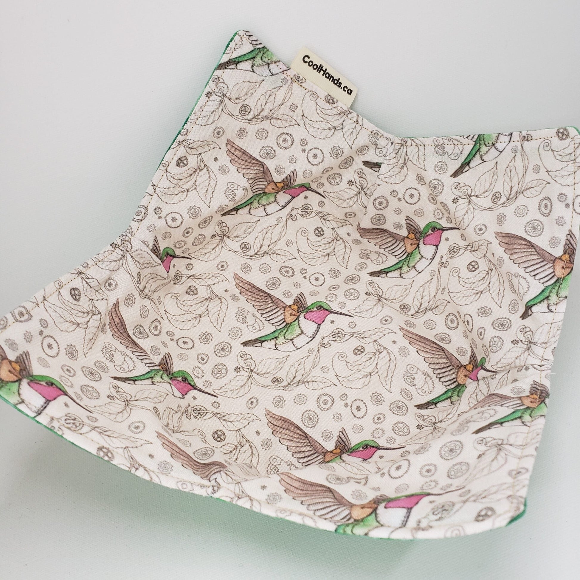 Hummingbirds... everyone's favourite jewel of the garden. These little beauties with their ruby throats are charmingly made in a steampunk design, with beautiful detail. The back of this is a bright fresh garden green. This is just... hummingbird joy.
