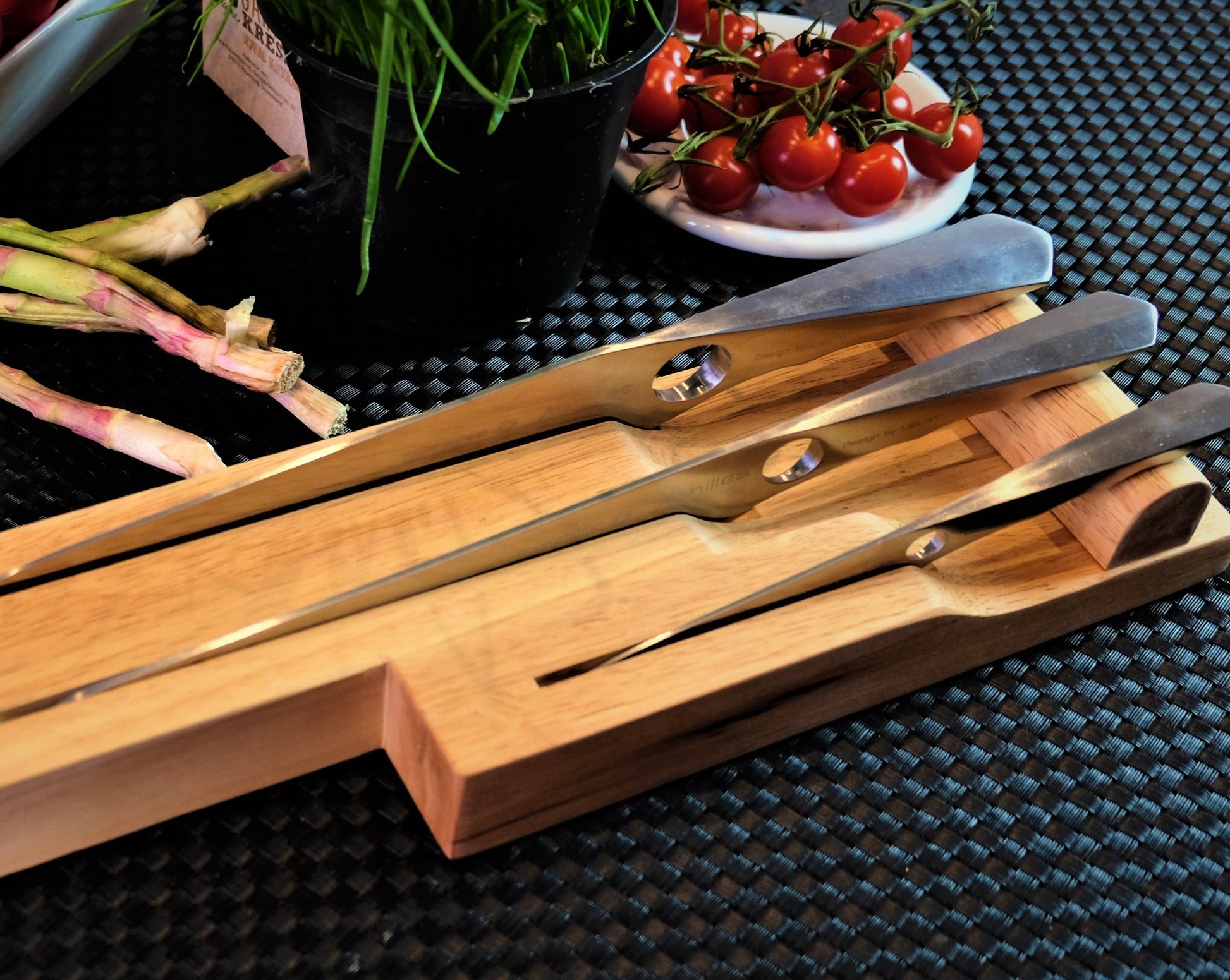 Der im Set enthaltene hölzerne Messerständer ist nicht nur praktisch, sondern auch ein ästhetischer Blickfang in jeder Küche. Er hält Ihre Messer sicher und griffbereit, während er gleichzeitig eine stilvolle Präsentation Ihrer hochwertigen Achilles Messer ermöglicht.